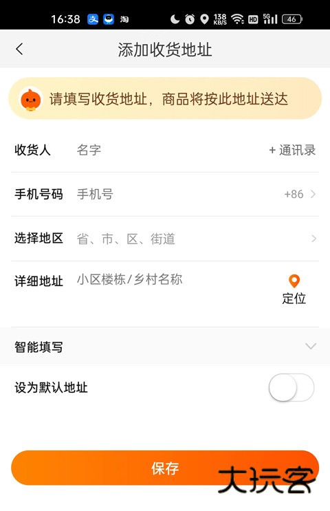 5、最后填写你的新的地址信息,点击保存,然后进行修改即可完成修改。