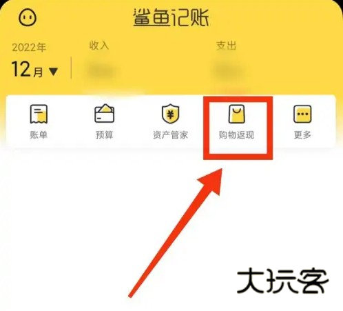 1、打开鲨鱼记账,在明细页面,点击【购物返现】。