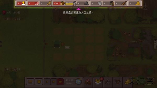 4、开场的剧情动画可以快进跳过,一进来就会看到顶部显示了当前资源储备和人口数量