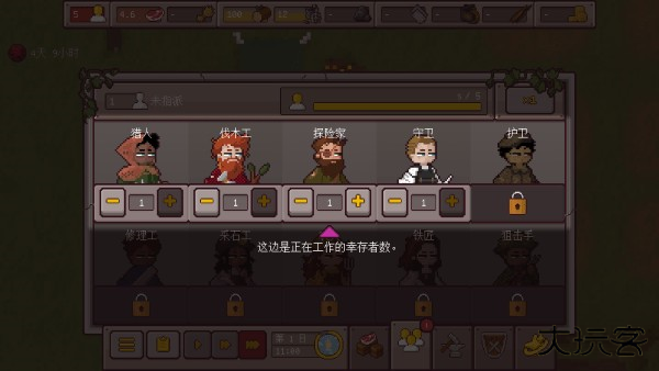9、点开幸存者列表给他们派活干,点击头像还能看每个人物的具体状况