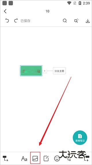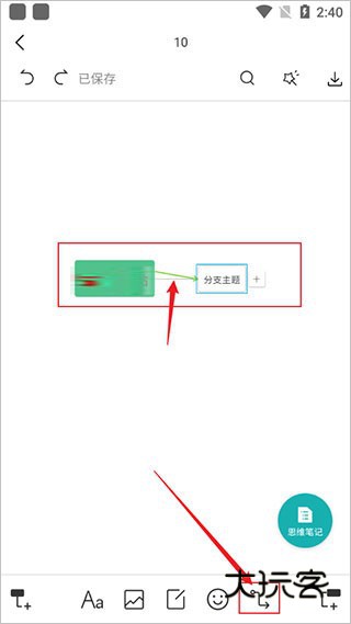 4、如图,左右两个图标,点击后即可在绿色方块上添加分支。