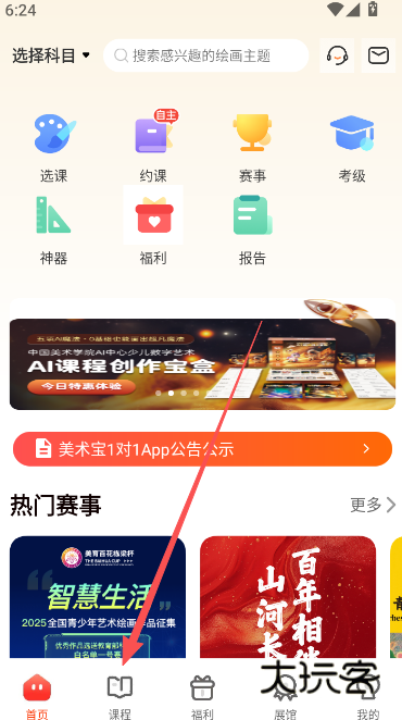 1、美术宝1对1的线上课程资源学习,可在课程版块购买。