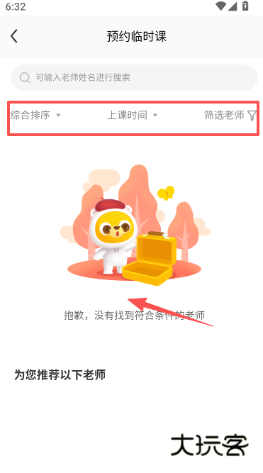 4、它会根据你所设置的筛选条件给到约课老师推送,如果没有推送完成,那就说明当前地区没有符合的,需要更改其他条件去寻找约课的老师了。