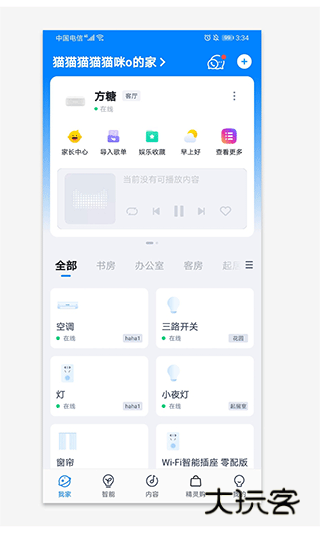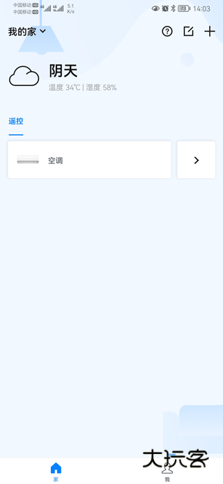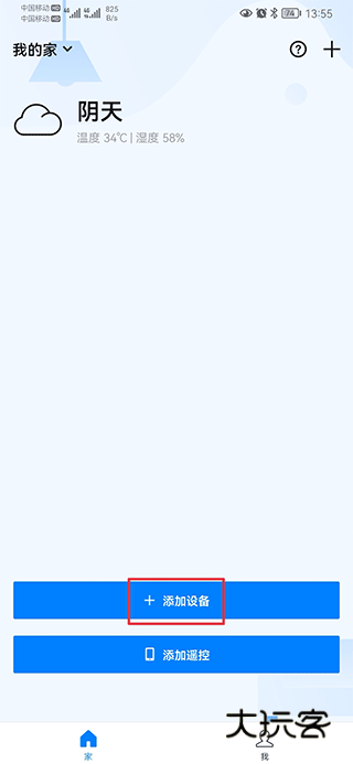 4、进入后完成登录,返回我家界面,就可以看到同步成功的BroadLink设备,之后就可以使用天猫精灵来语音控制博联智能中的智能设备了