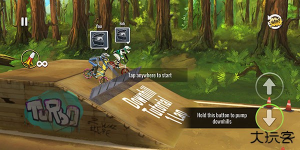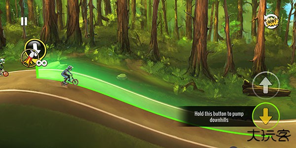6、冲下坡道时,屏幕上会跳出按键指引呢,别紧张,照着按往前冲就成,简单着呢