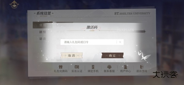 3、找到并点击下方的【礼包兑换码】,会弹出激活码输入框;