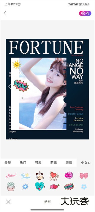 6、如果你想要让照片的内容更加丰富,可以选择你想要的贴纸,让照片拥有不一样的效果;
