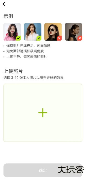2、根据提示上传自己的照片,需要3-20张照片,越多越像你自己