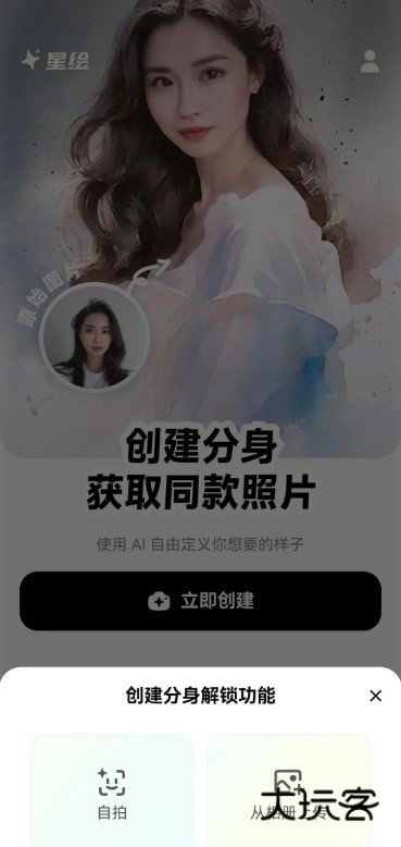 1、进入星绘App,点击【立即创建】。
