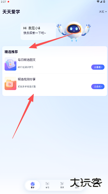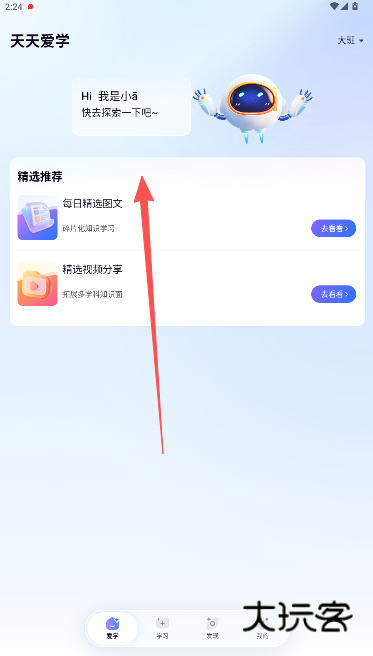 3、添加完成后,进入首页,它会为你进行智能学习资源推送,都是符合你这个学龄的内容,可根据实际学习需求去选择查看。