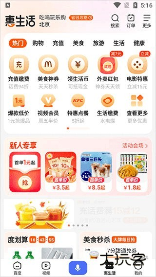 3、“惠生活”含有很多的福利活动和当地的吃喝玩乐购,可以登录后秒杀好物;