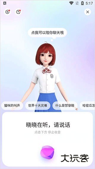 5、底部中心的语音可以唤醒语音助手晓晓,可以说话聊天还可以语音搜索哦。