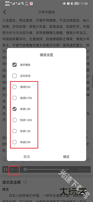 2、在进度条中点击1.0,然后就可以调整到想要的倍速了