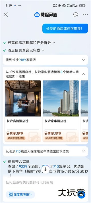 2、可以在这问一些问题【比如:长沙的酒店或住宿推荐】系统就会根据大数据智能推荐