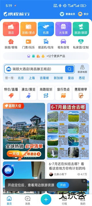携程旅行是一款备受好评的在线预订购票应用。该应用不仅拥有着非常强大的网上购票功能,还有着非常十分丰厚的各种优惠活动可以参与。强烈图鉴喜欢外出旅游的朋友们来下载这款应用。