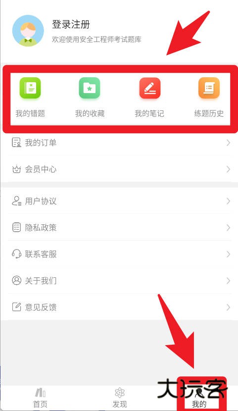 5、在“我的”页面,用户可查看我的错题、收藏、笔记和练题历史,方便复习和整理重点难点,同时还能管理订单和个人信息。