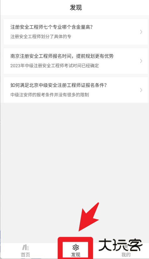 4、在发现页面,用户可以浏览注册安全工程师考试相关资讯,包括报名时间、考试条件和备考建议,帮助合理规划学习进度。