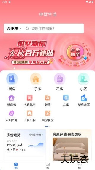 2、在首页展示了新房、二手房、租房等信息,方便大家做选择。