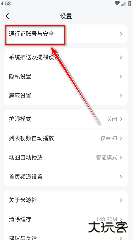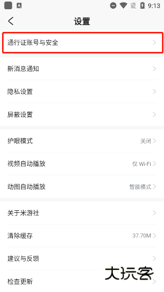 3.点击通行证账号与安全。