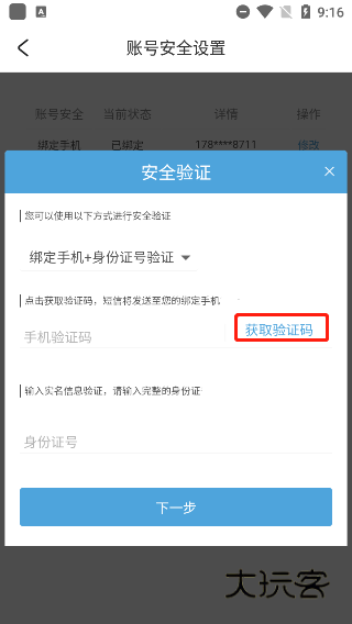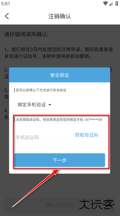 7.输入手机验证码,点击下一步。