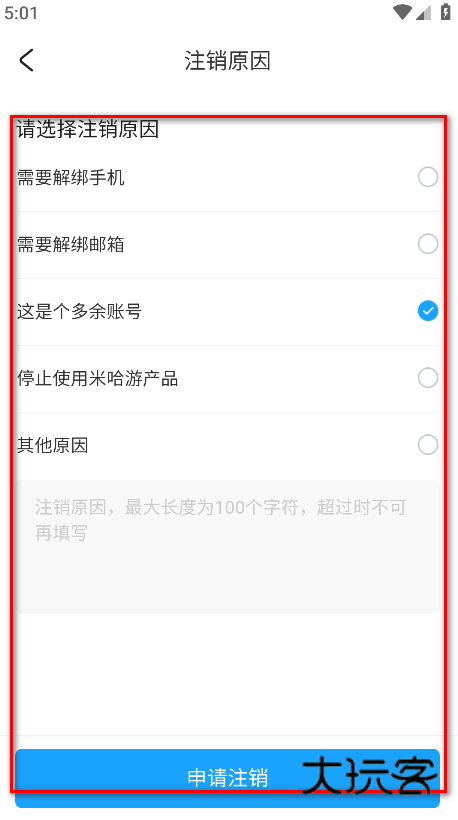 6.选择注销原因,再点击申请注销。