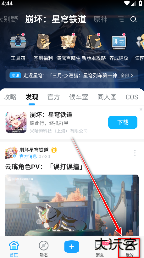 1.打开米游社,点击右下角我的。