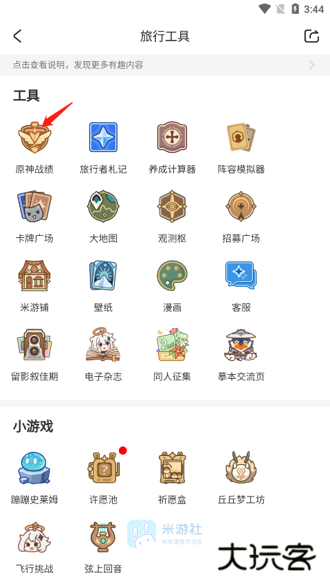 3、最后在旅行工具页面点击原神战绩,在这里面你就可以查看抽卡记录啦。
