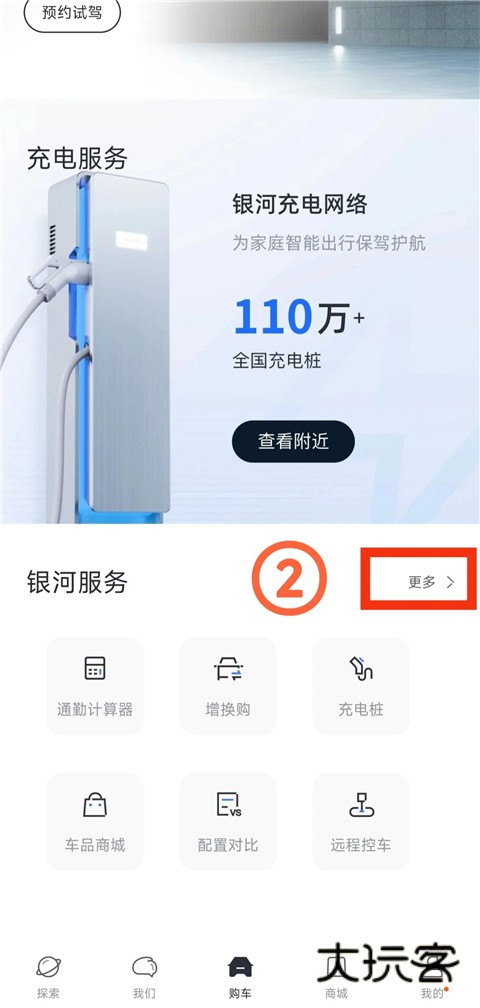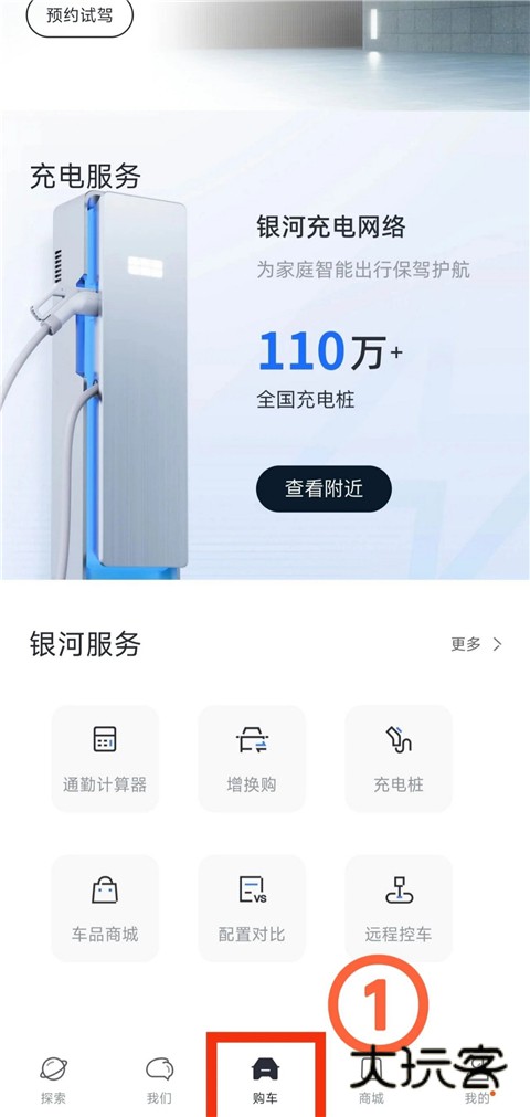1、打开吉利银河App,进入【购车】界面。