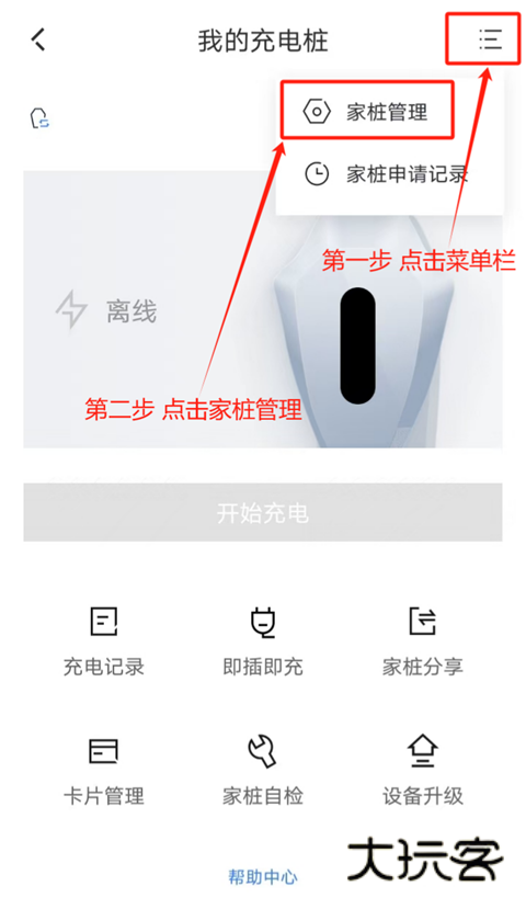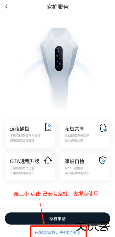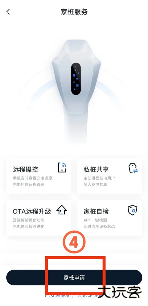 4、若无家桩,先点击【家桩申请】进行充电桩申请。