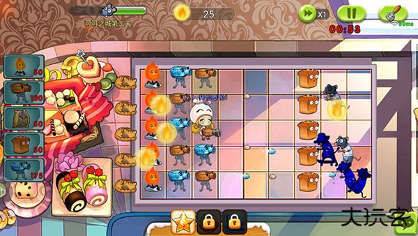 游戏里的关卡设计十分用心。不同关卡遇到的地形不一样,冲过来的老鼠种类和攻击方式也不同。想要赢,得看清楚关卡的特殊要求,动脑筋安排好每种美食武器的位置才行。