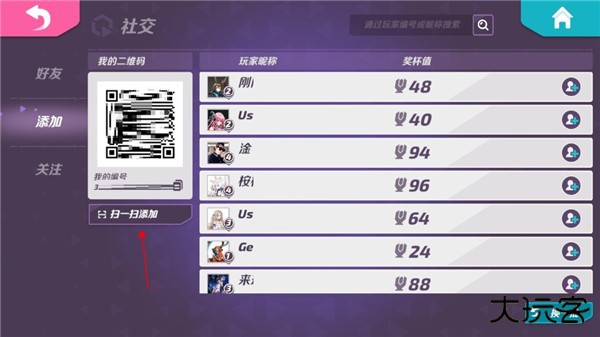 2、添加好友的方式很方便,可以选择使用游戏内的 “扫码” 功能来扫描对方的游戏二维码
