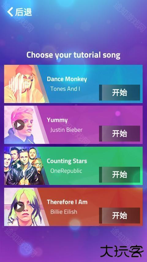 新手玩家进入游戏后直接就是教程阶段,在该阶段下只能选择歌曲类型