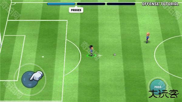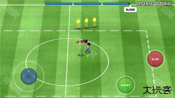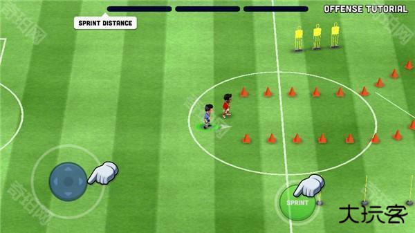 1、帮助玩家从基础的传球、铲球、抢球开始,逐渐加入换人、传球、射门等操作。逐步上手。
