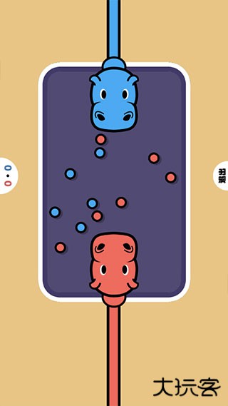点击操控河马吃掉小球,吃到自己颜色小球时获得2分,吃到对手颜色小球时扣除1分,先得到80分获胜。