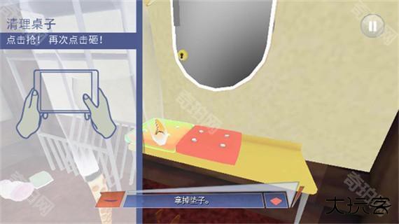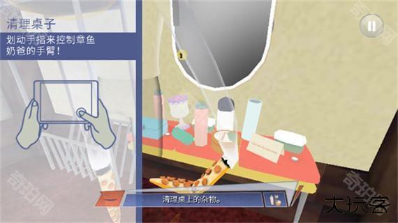 1、首先要操控章鱼清理桌子,点击屏幕就可以抬起章鱼的手臂,放到桌子上划动可清理桌子;
