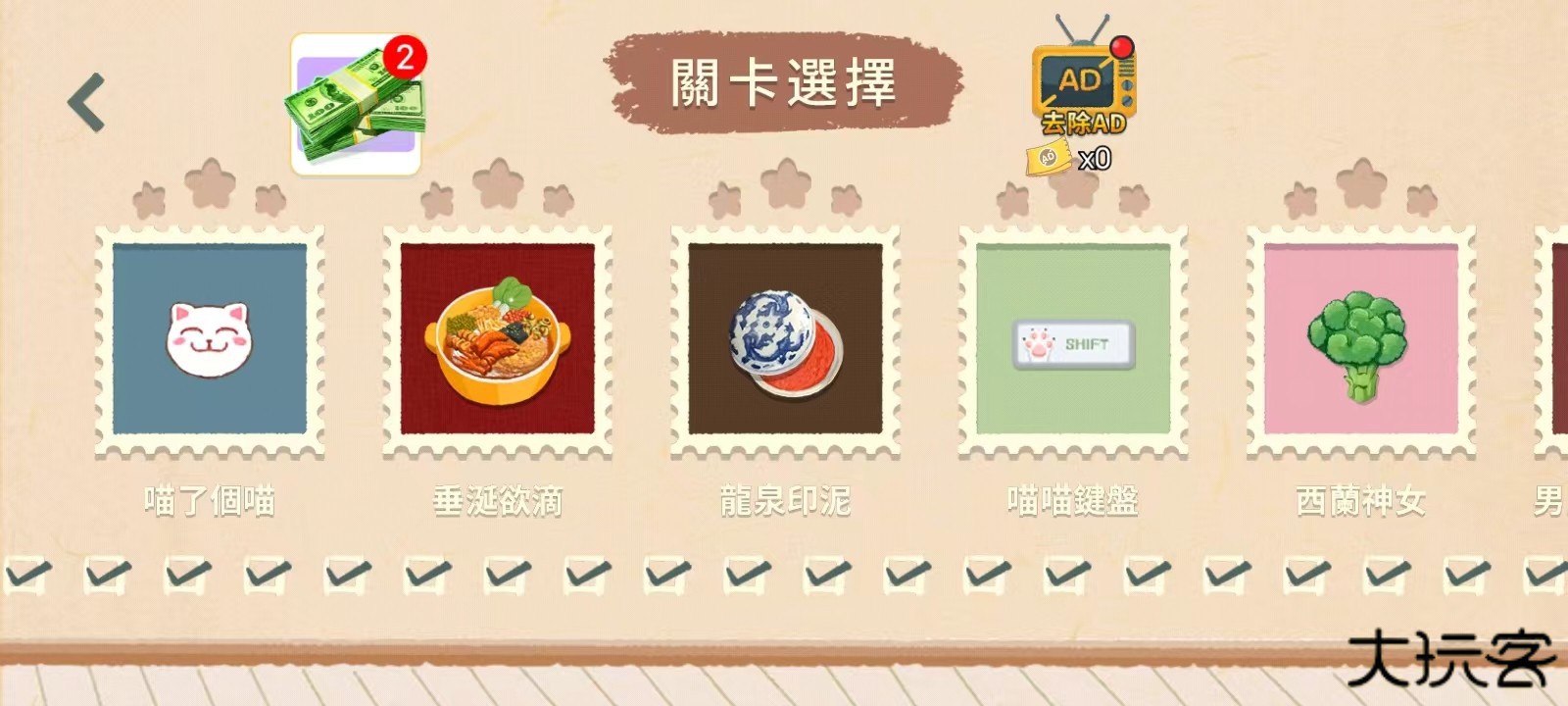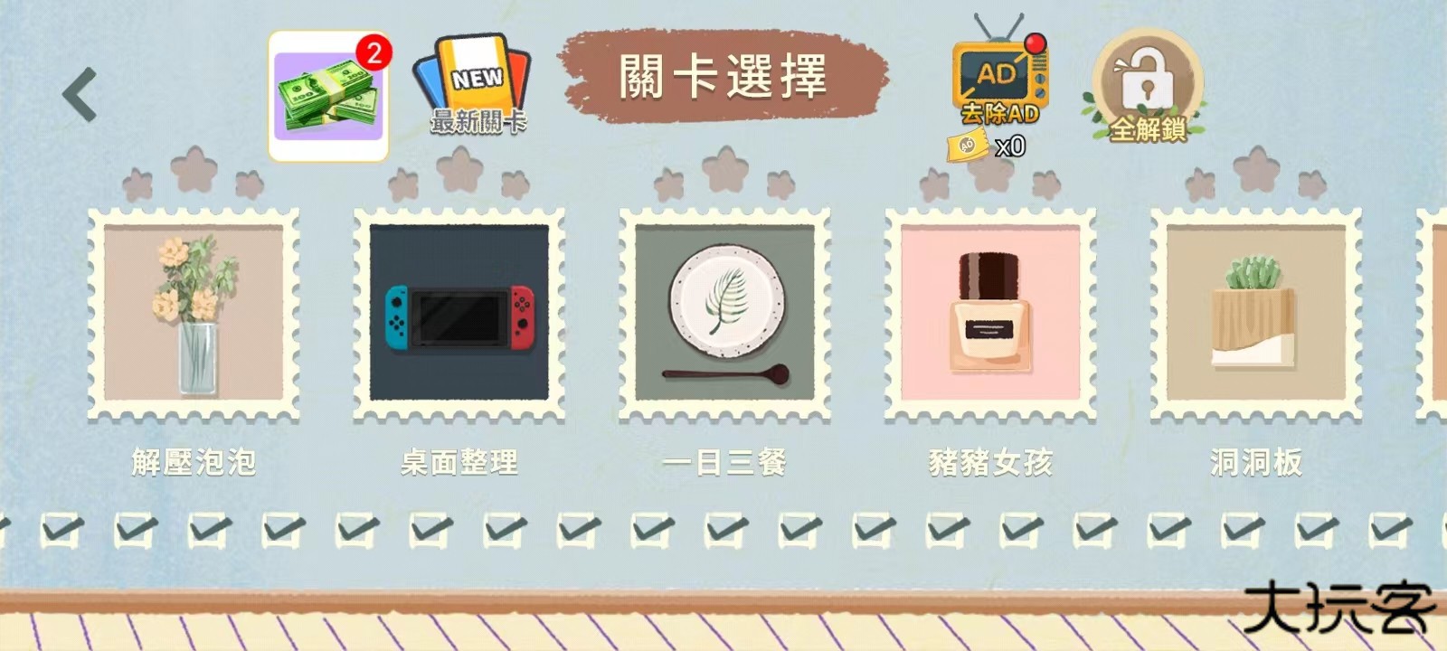 2、然后选择关卡;由于本游戏是免广告版,用户可以不用观看广告就可以解锁全部关卡;
