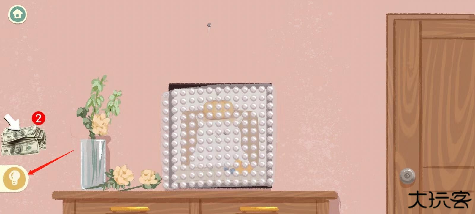 4、这里以解压泡泡为例,如果不知道关卡怎么过,可以点击左下角的【灯泡】,就会出现收纳提示;