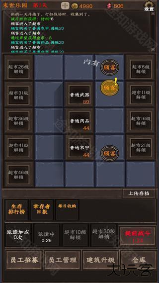 3、派遣员工收集,1分钟一次,如果战斗开启时员工没回来,无法参加战斗。