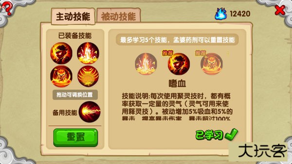 3在前期灵魂紧张的情况下,建议萌新们尽可能的学习主动技能,被动技能的增益在学习等级高了之后才会有效的体现。