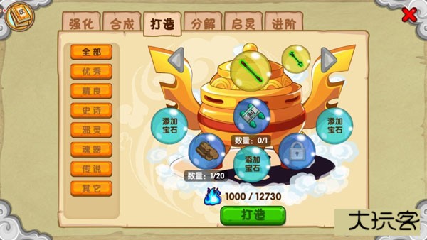 大部分的极品装备都由打造制作,在获得了制造符后,我们可以消耗一定材料和灵魂来进行打造。同理,也可以使用宝石,增加成功率。