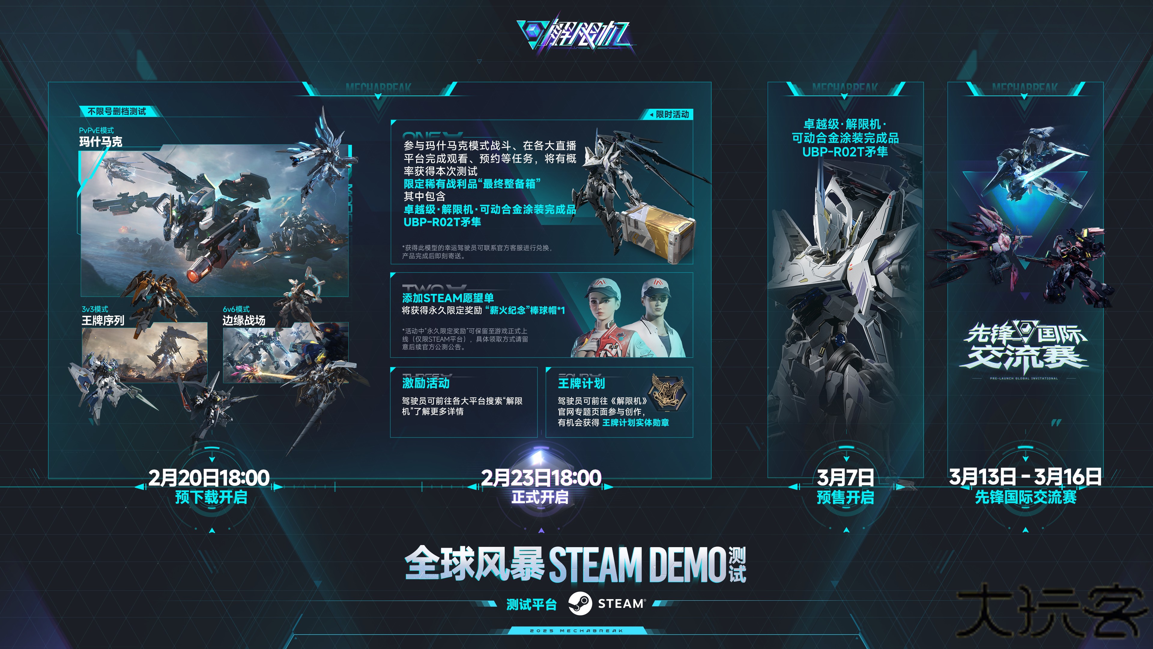 《解限机》全球风暴SteamDemo测试已于2月23日18:00正式开启,即刻登录Steam平台参与作战!