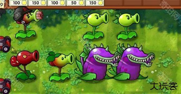 10、豌豆大嘴花:【豌豆+大嘴花】吃掉一个僵尸后在30秒内持续吐出僵尸球,僵尸球一共有三种类型,[第一种]对僵尸造成50%减速持续1秒,伤害20无限穿透,[第二种]伤害为40无限穿透,[第三种]击退僵尸,伤害2,最多可击退10次,不是无限穿透;
