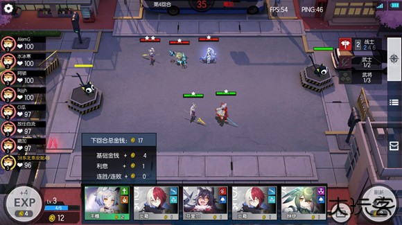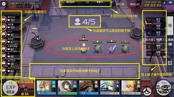 11、玩家战场上的英灵数量是由当前人口决定的,左下角显示了当前的人口上限和经验情况,下方经验条满后人口上限会自动增加1个,玩家可以花费四个金币来加速人口的升级,每次点击将增加4点经验。