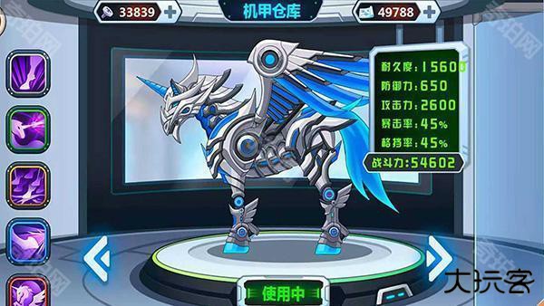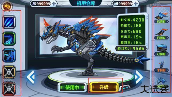 7、如下图机甲的耐久度和防御度等数值都是通过战斗中获取到的奖励升级而来,并最终结算出斗力。