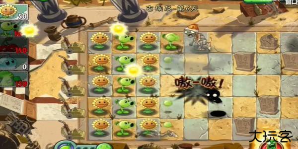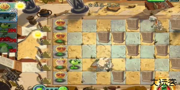 4、这一关需要保证充足的阳光,太阳花的占比要在一半左右,有的时候要作为盾牌来挡住攻击的。