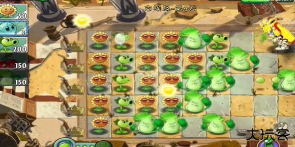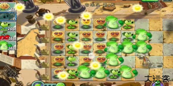 3、每种植物都有对应的阳光消耗,在适合的时机选择,快速通过所有挑战。