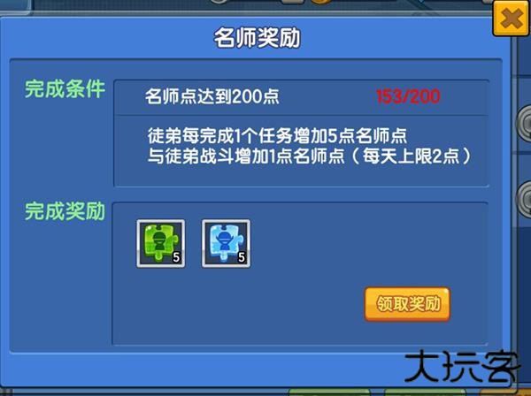 师傅勤恳培养徒弟,能够获得一定的奖励回报。徒弟每完成一个师徒任务,师傅即可增加5点名师点。师傅与徒弟共同战斗,每一局增加1点名师点(每天上限2点)。