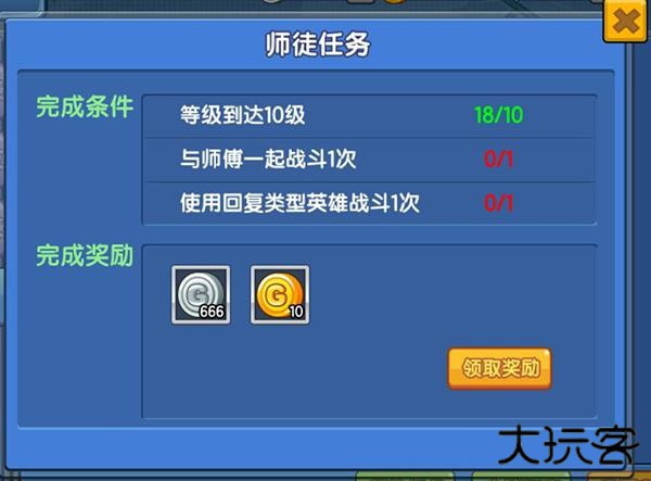游戏中师傅可以发布不同阶段的师徒任务,4个阶段的任务要求略有区别,主要包括等级任务和作战任务。完成师徒任务后,师徒双方均可获得不错的奖励。