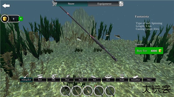 3、游戏商城里还可以更换各种鱼竿配件和鱼饵