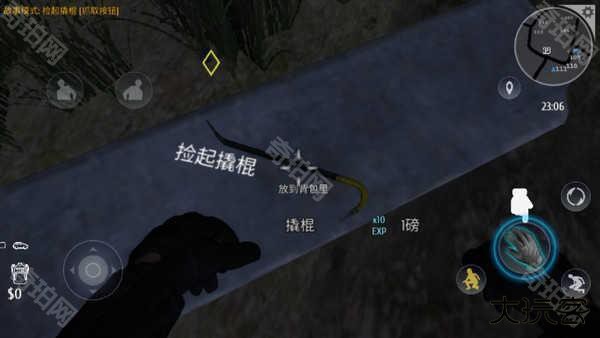 3、前面的地上有撬棍,我们捡起来放到背包;